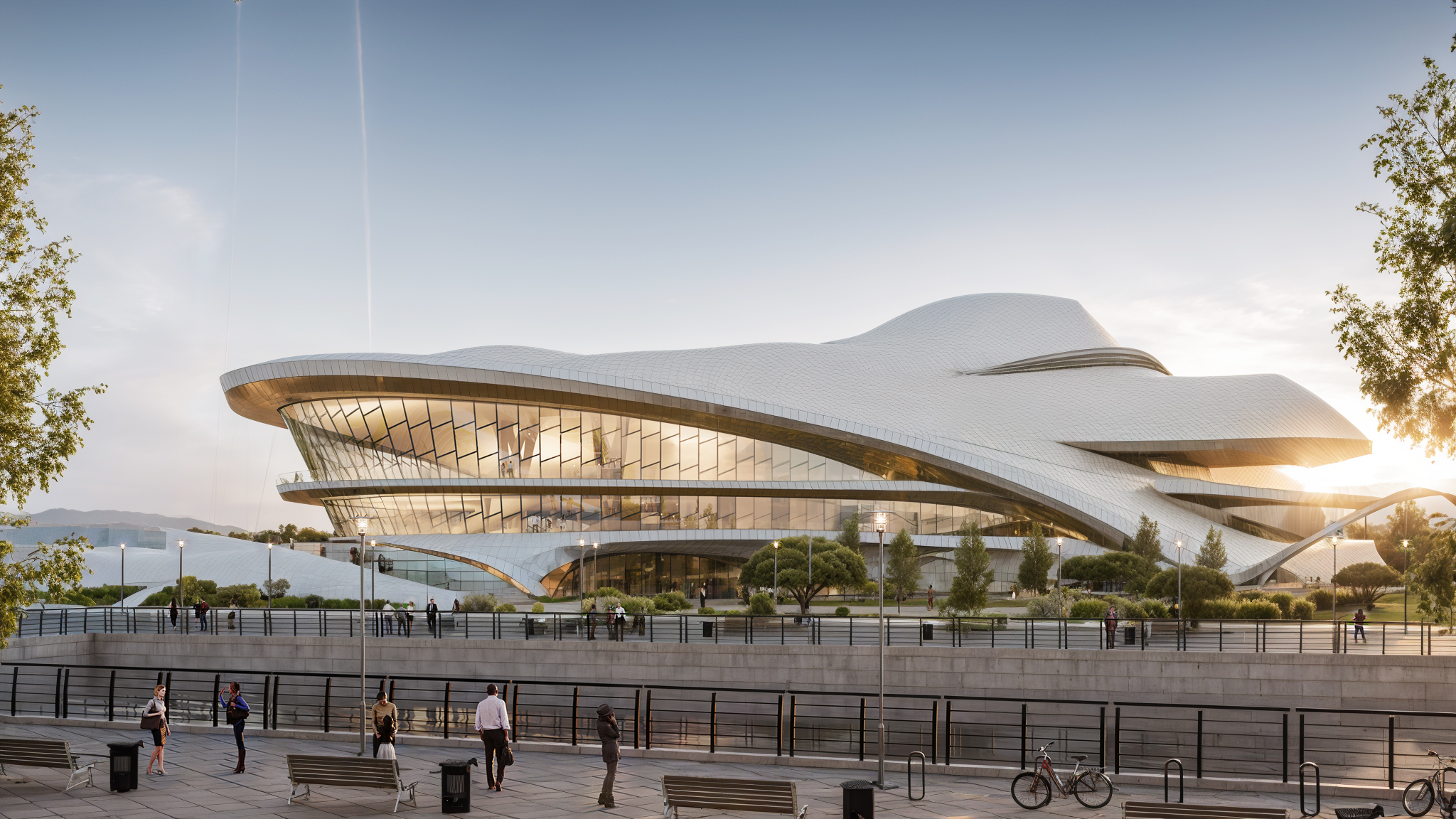 Nestled alongside the scenic Tura River, the newly designed concert hall in Tyumen stands as a bold statement of modern architecture. With its innovative amorphous form, this striking building captures the essence of fluidity and movement, reminiscent of the works of renowned architects Zaha Hadid and Santiago Calatrava. The design reflects a harmonious blend of art and function, creating a space that is not only visually stunning but also highly functional for various performances and events.